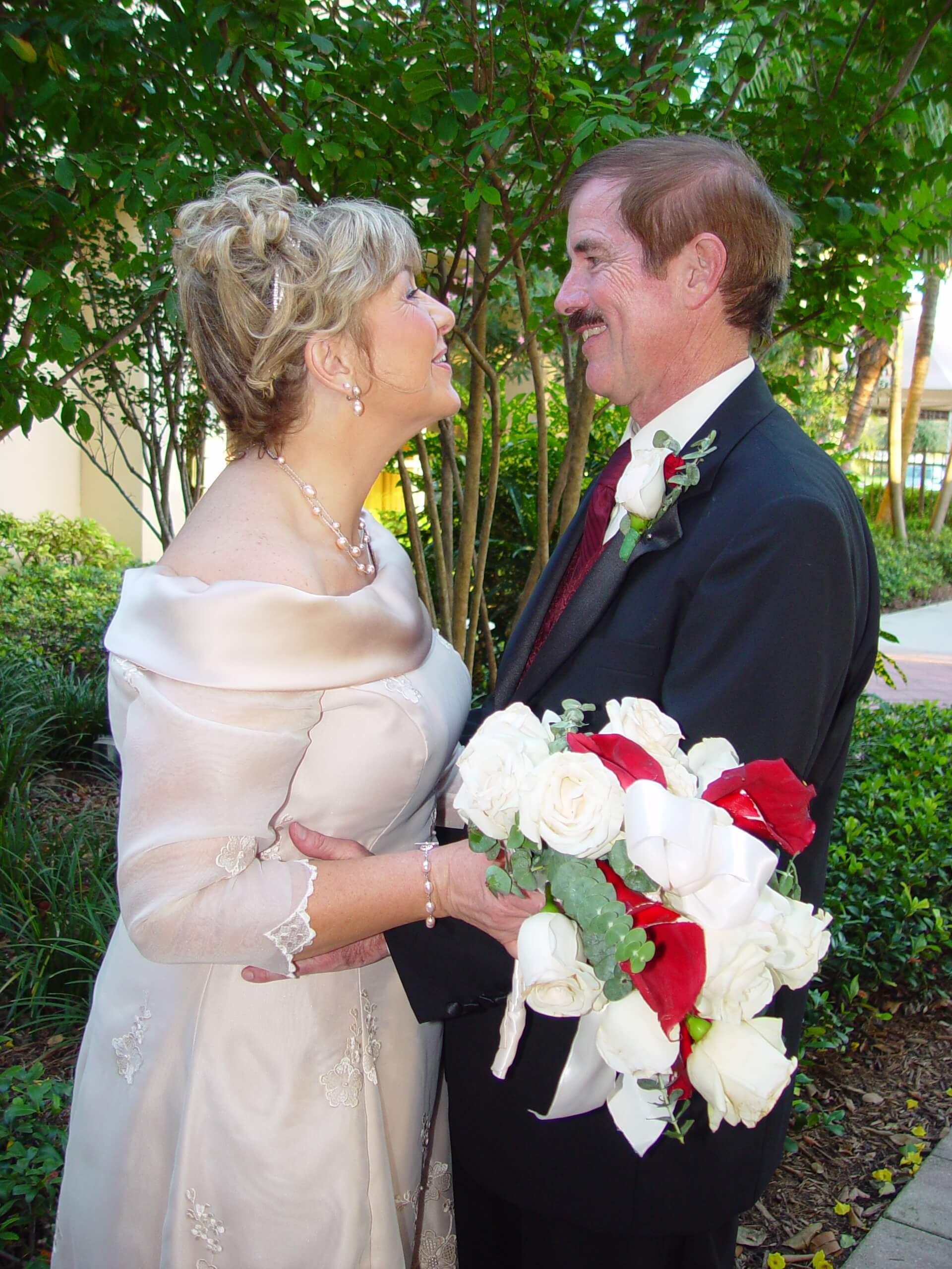 She had heard that Teresa was dating someone she had met online...an ax-toting Texan who liked to roam alone in the woods! So, she was naturally concerned and mentioned it to their pastor. When Dave arrived at the parish in Florida, the priest immediately asked Dave to join him in his office so he could determine if this man was a potential ax murderer! Apparently, Teresa was a good judge of character though, as this same priest would eventually marry them.