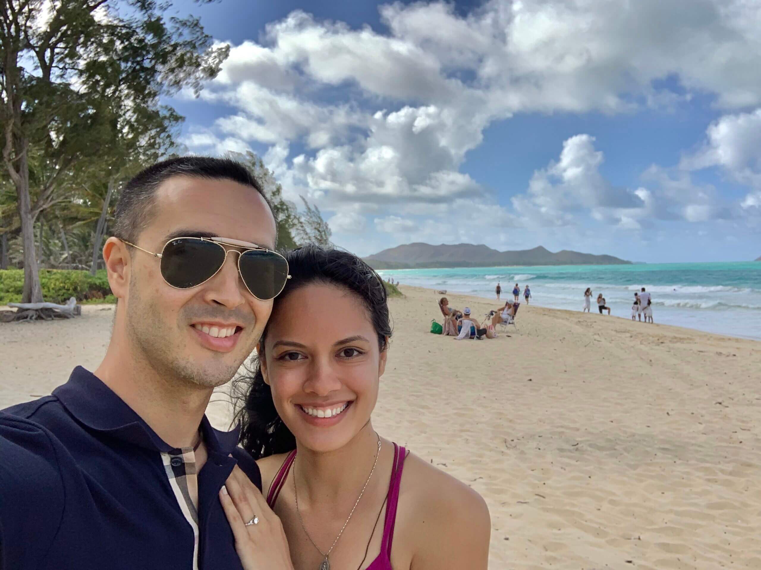 Rob, who worked as a pilot, only planned on visiting for five days, but when his airline furloughed him because of COVID, he decided to stay in Hawaii and couch surf for the duration of his furlough—from March through May. During this time, Rob asked Alicia to be his girlfriend.