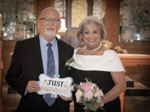 This was Steve’s home parish, and the couple deeply admires the pastor, who prepared them for marriage and celebrated their wedding mass. Wanting a small and private ceremony, Mary and Steve invited their sons, their son’s wives, their grandchildren, the brother of Mary’s late husband, and a deacon friend to the ceremony. After their wedding, Steve and Mary took a trip to the French Quarter in New Orleans, a city near and dear to both of their hearts.