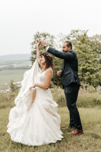 They wed June 7th of 2025 at Raquela’s home parish of St. Joseph. The day was full of delight and surprises! Justin waited to see his bride until she walked down the aisle, they both cried during the vows, and their wedding party consisted of twenty-six friends and family.