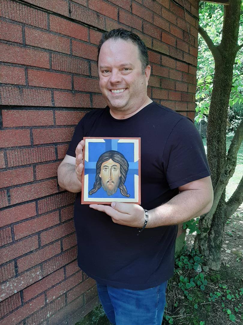 Until, one weekend, I took an icon painting class in the rec room of a church in Los Angeles. It was a two-day course where a British instructor taught us to paint the face of Jesus in the traditional Byzantine style. We each painted (or tried anyway) our own image of Jesus on a small wooden panel.